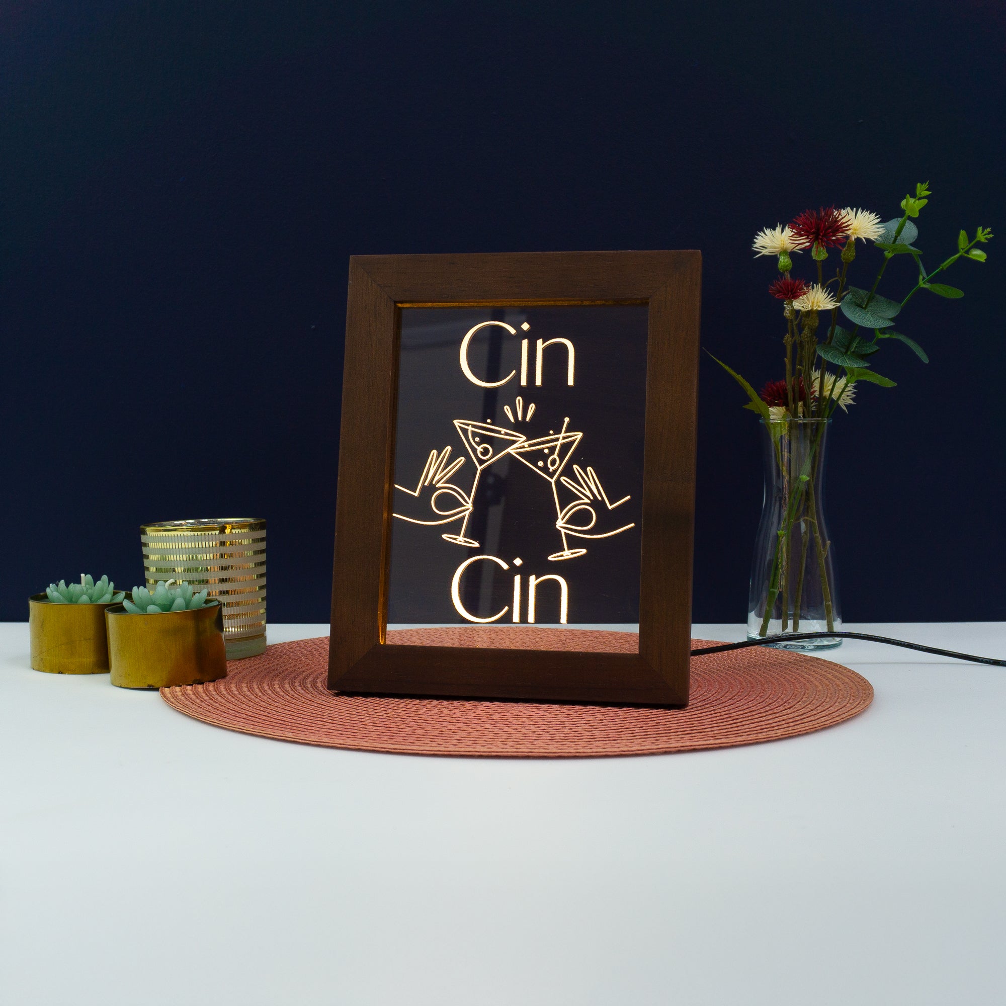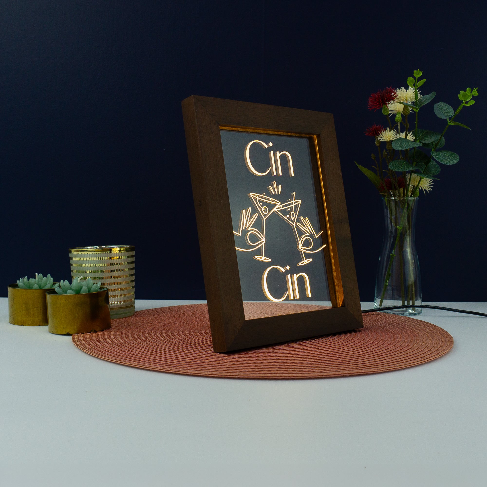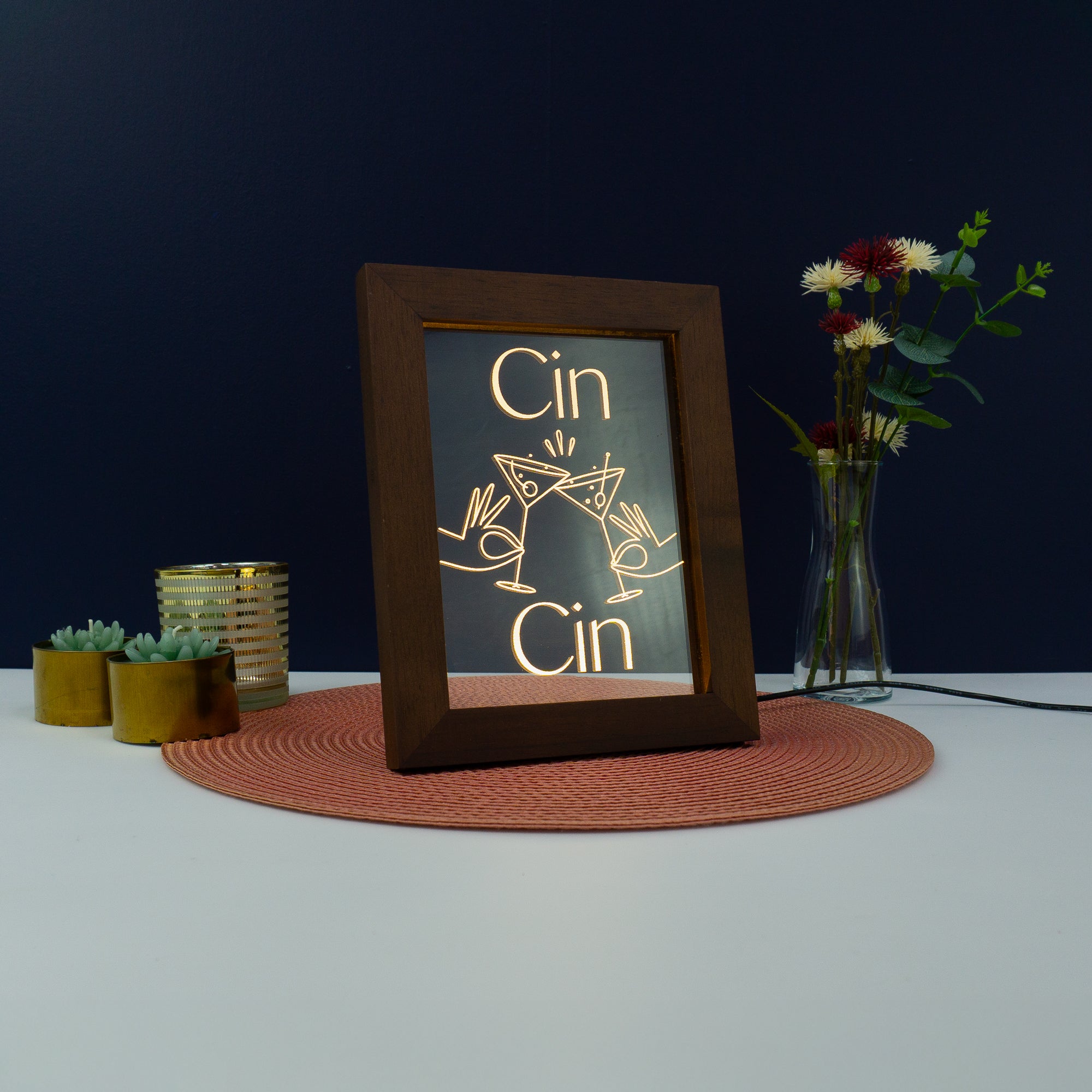 Funny pop art Cin Cin Light up LED framed sign Retro typography