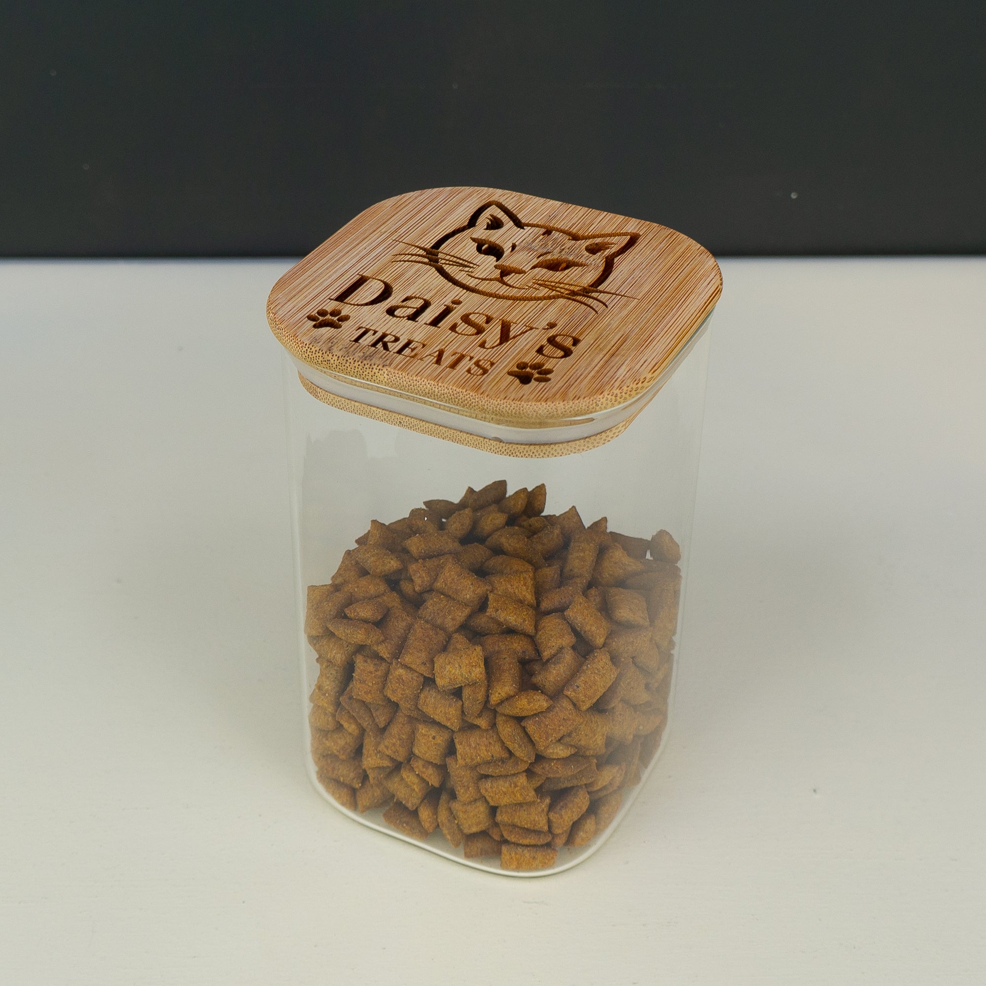 These glass treat jars make the perfect gift for any cat lover or owner. These personalised pet cat treat and food storage jars are made from high-quality borosilicate glass, ensuring durability and elegance. Available in four different sizes, they are versatile enough to suit any home. The bamboo lid features a silicone seal that keeps the treats fresher for longer. The lid is also laser engraved with a charming cat illustration and can be personalised with your cat’s name, adding a unique and thoughtful touch. Whether you’re treating yourself or looking for the ideal gift for a fellow cat enthusiast, these jars are sure to delight any cat lover or owner.