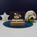 Personalised child's digger bedroom name sign. Light up LED decoration