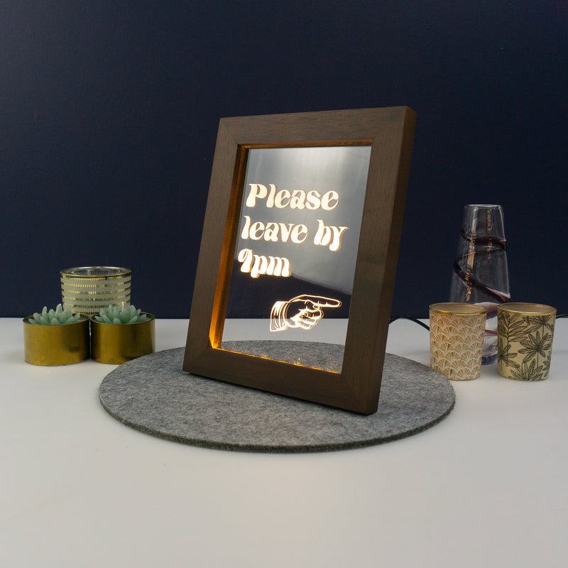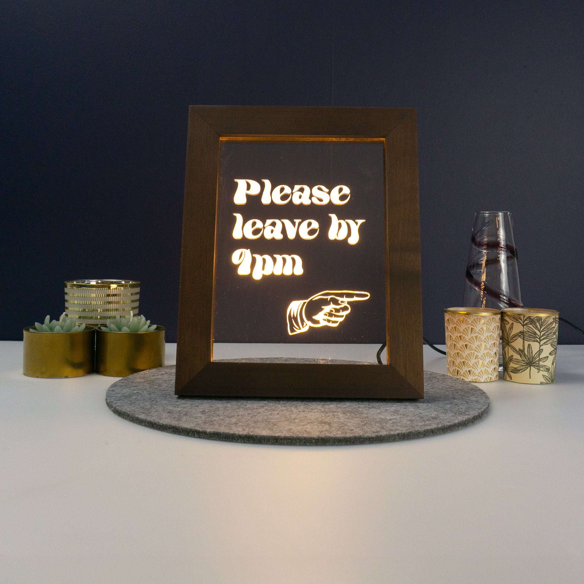 This Please leave by 9pm Light up LED frame artwork makes the perfect house warming gift.